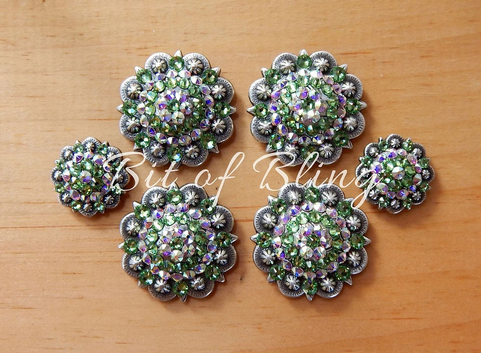 Antique Silver Berry Saddle Concho Set - Peridot & Crystal AB